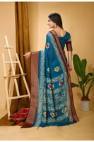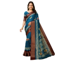 Women's Soft Blooming Marshmallow Fabric Kalamkari Printed Saree With Unstitched Blouse 5.5Mtr (Blue)
