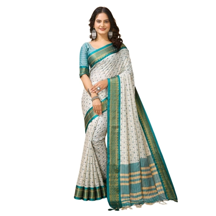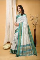 Women's Soft Cotton Silk Printed Saree With Unstitched Blouse 5.5Mtr (Rama Green)