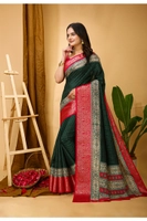 Women's Soft Dola Cotton Kalamkari Printed Saree With Unstitched Blouse 5.5Mtr (B.Green)