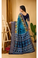 Women's Soft Dola Cotton Kalamkari Printed Saree With Unstitched Blouse 5.5Mtr (Blue)