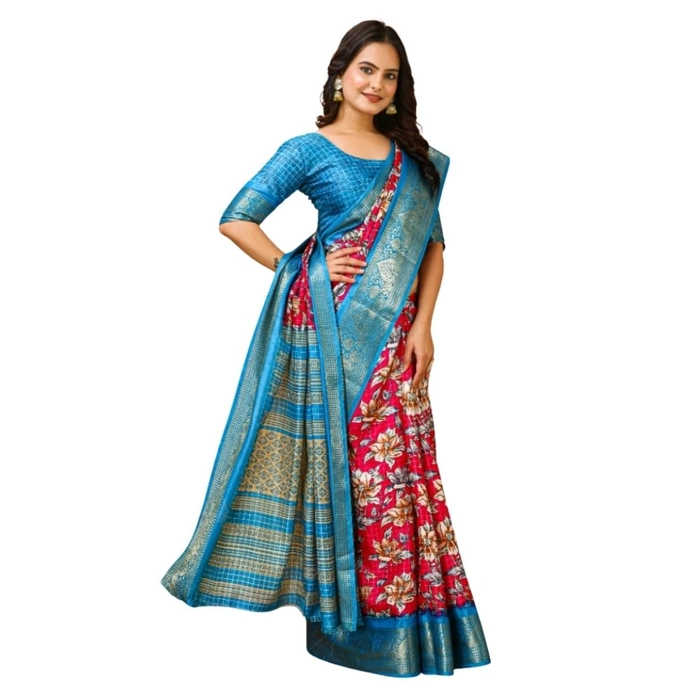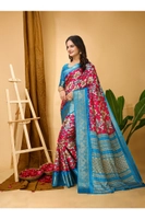 Women's Soft Dola Cotton Kalamkari Printed Saree With Unstitched Blouse