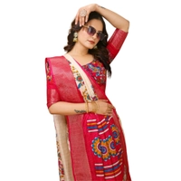 Women's Soft Dola Cotton Kalamkari Printed Saree With Unstitched Blouse 5.5Mtr (Red)