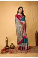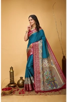 Women's Soft Dola Cotton Kalamkari Printed Saree With Unstitched Blouse 5.5Mtr (Sky Blue)