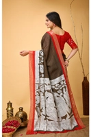 Women's Soft Handloom Cotton Kalamkari Printed Saree With Unstitched Blouse 5.5Mtr (Brown)