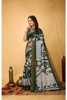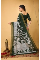 Women's Soft Handloom Cotton Kalamkari Printed Saree With Unstitched Blouse 5.5Mtr (Green)