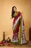 Women's Soft Handloom Cotton Kalamkari Printed Saree With Unstitched Blouse 5.5Mtr (Maroon)