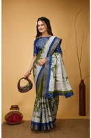 Women's Soft Handloom Cotton Kalamkari Printed Saree With Unstitched Blouse