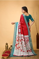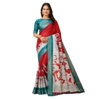 Women's Soft Handloom Cotton Kalamkari Printed Saree With Unstitched Blouse 5.5Mtr (Red)