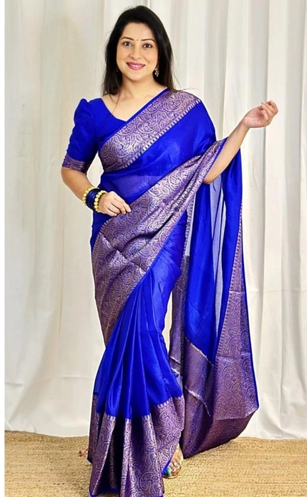 Women's Soft Lichi Silk Solid Saree With Unstitched Blouse 5.5Mtr (Blue)