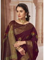 Women's Chanderi Cotton Printed Saree With Unstitched Blouse (Maroon, 5-6 Mtrs)