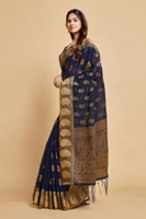 Women's Chanderi Cotton Printed Saree With Unstitched Blouse (Navy Blue, 5-6 Mtrs)