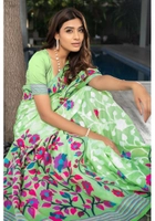 Women's Cotton Printed Saree With Unstitched Blouse (Green, 5-6 Mtrs)