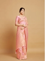 Women's Linen Printed Saree With Unstitched Blouse (Pink, 5-6 Mtrs)