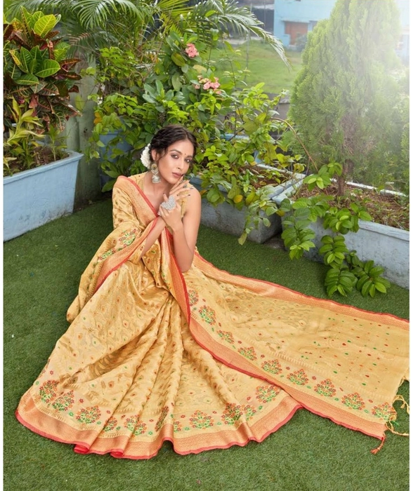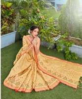 Women's Organza Printed Saree With Unstitched Blouse (Beige, 5-6 Mtrs)