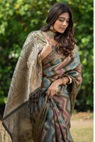 Women's Organza Printed Saree With Unstitched Blouse (Grey, 5-6 Mtrs)