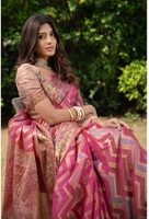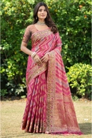 Women's Organza Printed Saree With Unstitched Blouse (Pink, 5-6 Mtrs)