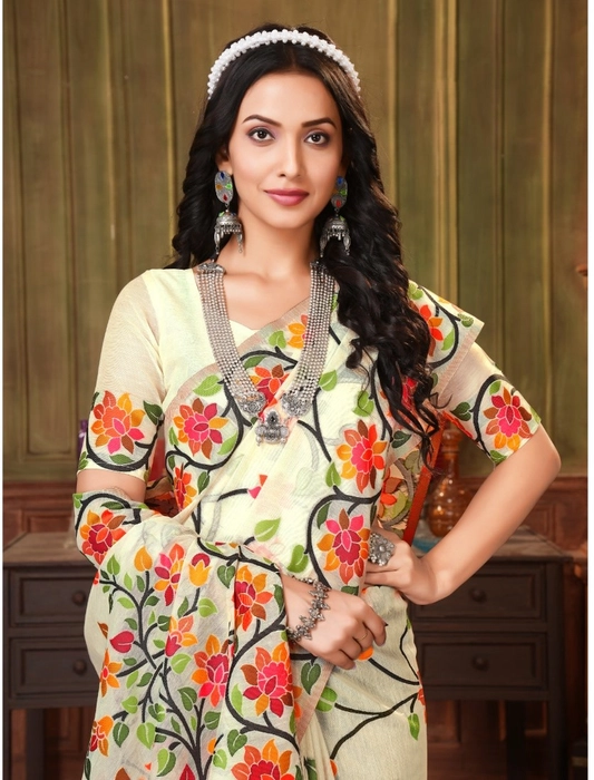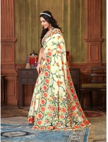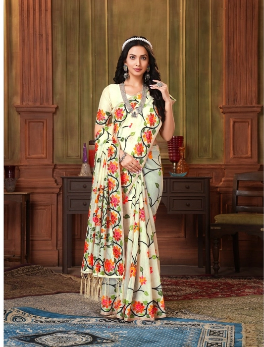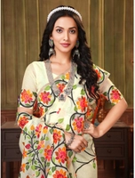 Women's Organza Printed Saree With Unstitched Blouse (White, 5-6 Mtrs)